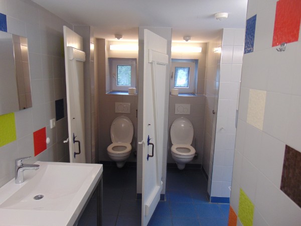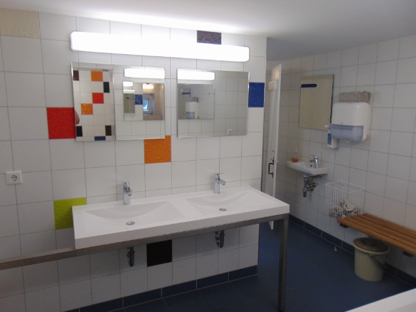 Anbau:  | zwei Doppelzimmer mit E-Heizung, Waschbecken und eine Toilette stehen den Lehrern oder Betreuern großer Gruppen zur Verfügung |  | abschließbarer Fahrradraum für 40 Fahrräder |